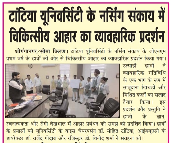 The supportive environment motivates me to grow academically and personally every day. I am proud to be a part of Tantia University and look forward to making a meaningful impact in the healthcare field."